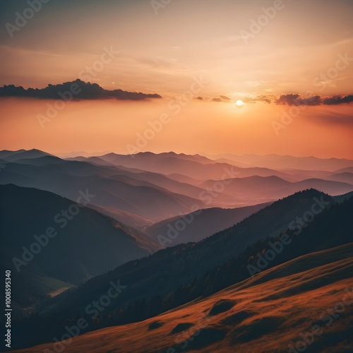 © Parichart, Obraz premium Golden Hour Majesty: Sunset Over Majestic Mountains