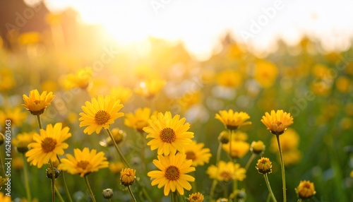 © akhmad, Obraz premium Golden Hour Meadow: A Symphony of Yellow Daisies