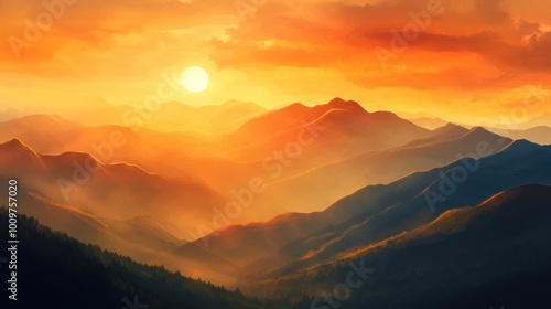© akhmad, Obraz premium Golden Hour Mountain Landscape