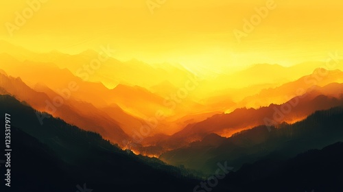 © Penatic Studio, Obraz premium Golden Hour Mountain Range Landscape Panorama