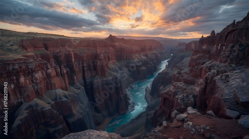 © Muhammad, Fototapeta premium Golden Hour Over Canyon River with Breathtaking Mountain View
