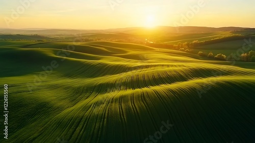 © Ariep, Obraz premium Golden Hour over Rolling Green Fields