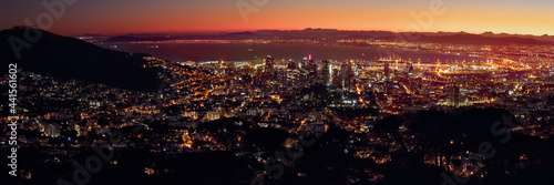 Fototapeta premium Golden hour panoramic of a winter sunrise over Cape Town in South Africa.