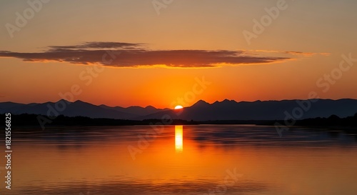 Obraz premium Golden Hour Serenity - A Tranquil Sunset Over Water.