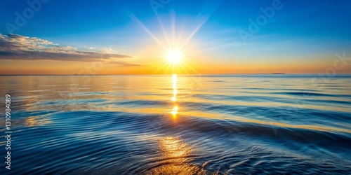 © NongPim, Obraz premium Golden Hour Serenity Sunbeams Dance on Gently Rippling Ocean Waters