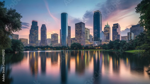© Kopgz-41, Fototapeta premium Golden Hour Skyline Cityscape in Sunset Hues