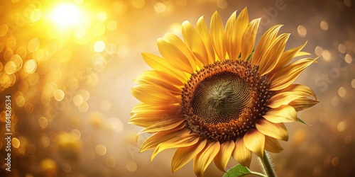 © VisualVault, Fototapeta premium Golden Hour Sunflower A Vibrant Close-Up of a Single Blossom Against a Soft, Bokeh Background