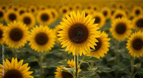 © CamTu, Fototapeta premium Golden Hour Sunflowers: A Field of Dreams AI Generated