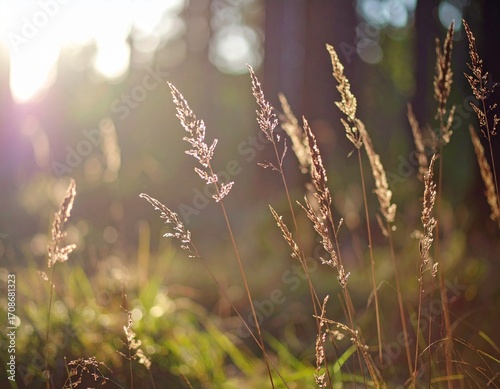 © reptorAI, Fototapeta premium Golden Hour Sunlight Through Wild Grass in a Serene Meadow.