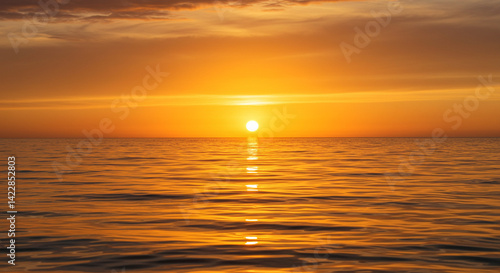 © Dewa, Fototapeta premium Golden Hour Sunset over Calm Ocean Water Serene Seascape at Dusk