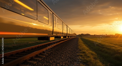 Naklejka premium Golden Hour Train Journey: A Scenic Sunset Ride