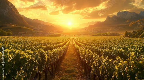 © Vitaliy, Fototapeta premium Golden Hour Vineyard Sunset Landscape Photography