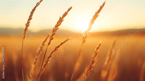 Fototapeta premium Golden hour wheat field with warm, cinematic bokeh