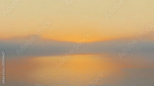 © Leli, Obraz premium Golden hues reflect on tranquil waters as the sun sets below a soft soothing gradient sky