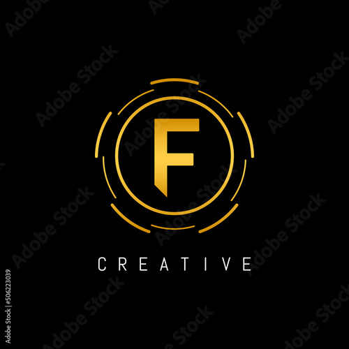 Obraz premium Golden Initial Letter F Logo Design with Circle Element. Linked Typography F...