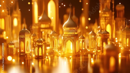 © HATO PROJECT, Obraz premium Golden Islamic Cityscape at Night