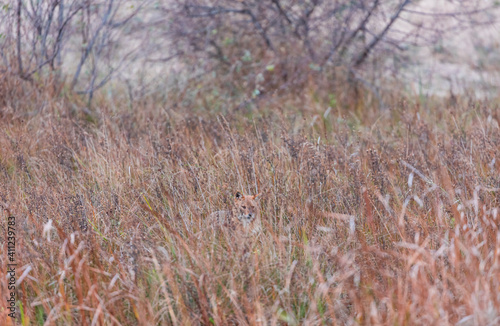 Fototapeta premium Golden jackal - CHACAL DORADO (Canis aureus), Danube Delta - DELTA DEL DANUBIO, Ramsar Wetland, Unesco World Heritgage Site, Tulcea County, Romania, Europe