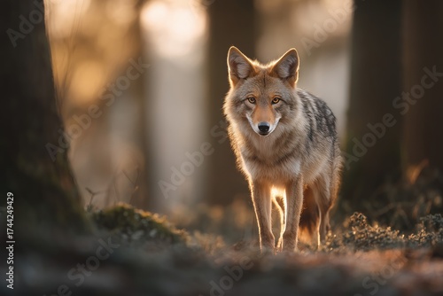 © pixelliebe, Fototapeta premium Golden Jackal in Golden Hour