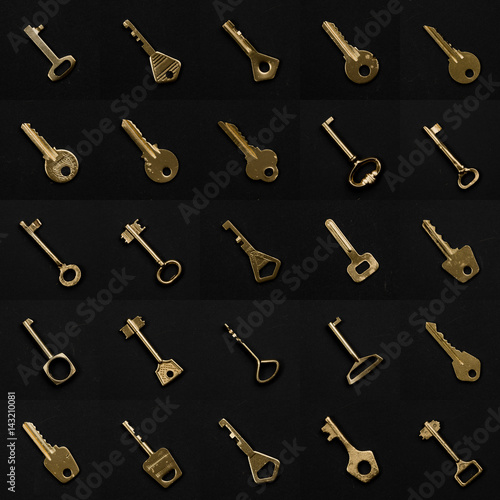 © yurko_gud, Naklejka premium Golden keys collection on black background