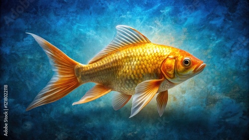 Naklejka premium Golden Koi Fish, Blue Background, Aquatic Life, Underwater Scene, Rule of...
