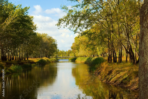 © PhotoSky, Fototapeta premium golden lake and bridge in a poplar park