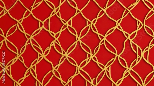 © hongjian, Fototapeta premium Golden lattice pattern on red background
