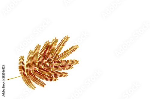 © Inkara, Obraz premium Golden leaf of chinese mimosa tree on white background. Isolated.