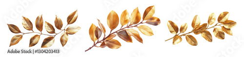 © Dorido, Obraz premium Golden leaves arranged artistically on a white background.
