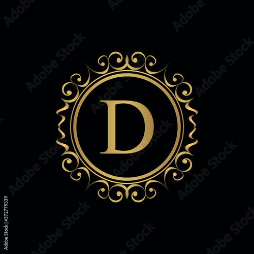 © veronchick84, Naklejka premium Golden letter D template logo Luxury letter with crown. Monogram alphabet . Beautiful royal initials letter.