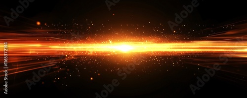 Obraz premium Golden light beam exploding on black background with glowing particles