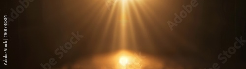 Naklejka premium Golden light beam spotlight. A bright golden spotlight shines on a dark background, creating a dramatic and atmospheric effect.