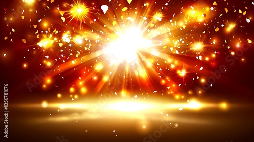 Naklejka premium Golden Light Burst with Festive Sparkle.