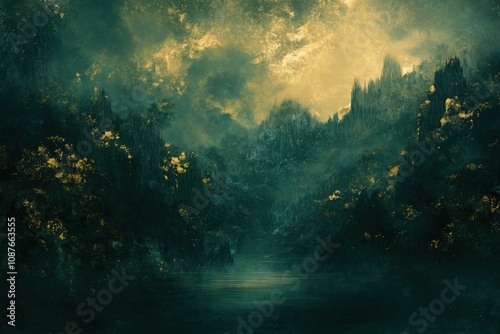 © Chaiciri, Naklejka premium Golden Light in Mystic Forest