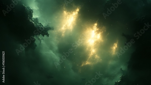 © MASJAB, Fototapeta premium Golden Light Pierces Dark Nebula Cloudscape