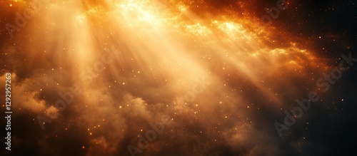 Naklejka premium Golden light rays breaking through dark clouds.