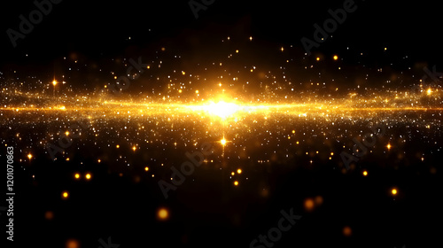Naklejka premium Golden light streaks across dark space; cosmic background, video overlay