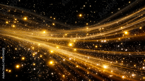 Obraz premium Golden light streaks flowing across a star-filled background, creating a dynamic abstract scene with sparkling particles