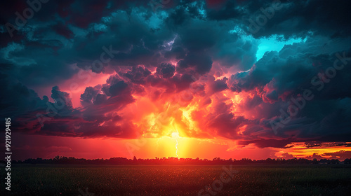 © S-Rika, Naklejka premium Golden Lightning Bolt Illuminating Stormy Night