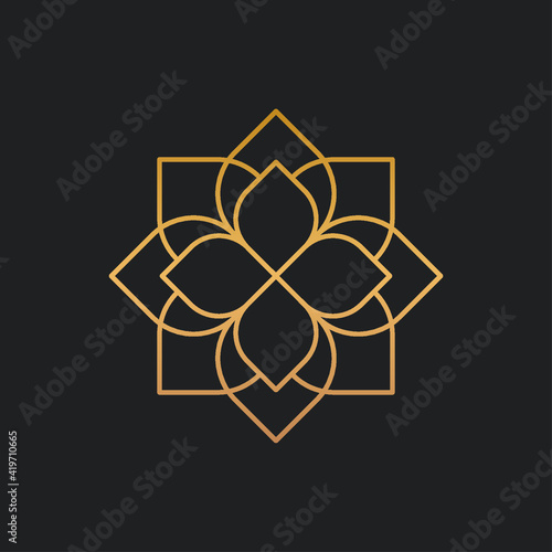 © Asenbayu, Fototapeta premium Golden linear floral ornament vector