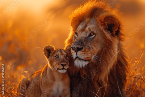 © Riya, Naklejka premium Golden Lion and Baby A Pride Moment Generative AI