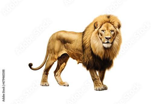 Obraz premium Golden lion No shadows, highest details, sharpness throughout the image, highest resolution, lifelike, white background