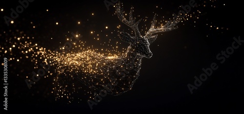 © deni, Fototapeta premium Golden-lit deer, particle effect, dark background