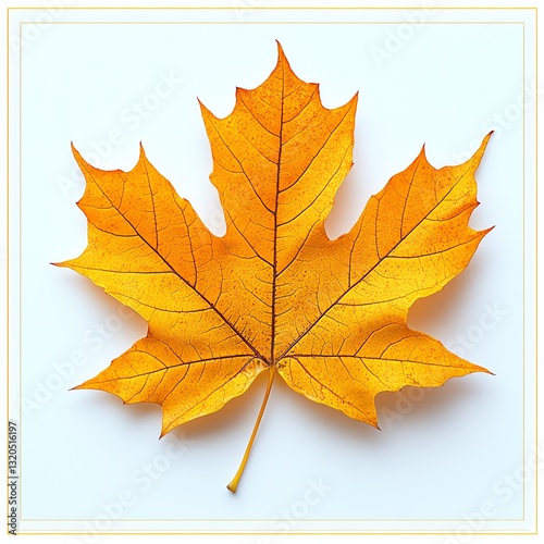 © rajagambar99, Fototapeta premium Golden Maple Leaf Close-up on White Background for Fall Season