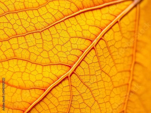 © Pimchada, Obraz premium Golden maple leaf veins up close, showcasing intricate natural patterns, macro, detail