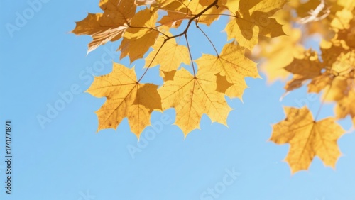 Fototapeta premium Golden Maple Leaves Against Blue Sky