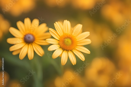 © Toseef, Obraz premium Golden marguerite flower bokeh background, AI Generated