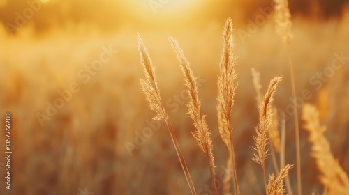 Fototapeta premium Golden Marsh Grass Swaying Gently Under The Orange Sky of Autumn Sunset