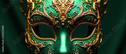 Naklejka premium Golden Mask, Majestic Eyes, Green Pattern