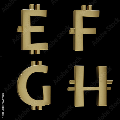 Obraz premium Golden metal Bitcoin alphabet - letters E-H