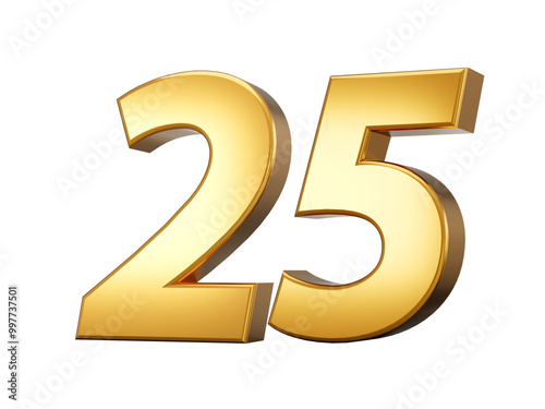 © Hammad, Fototapeta premium Golden metallic Number 25 Twenty five, White background 3d illustration